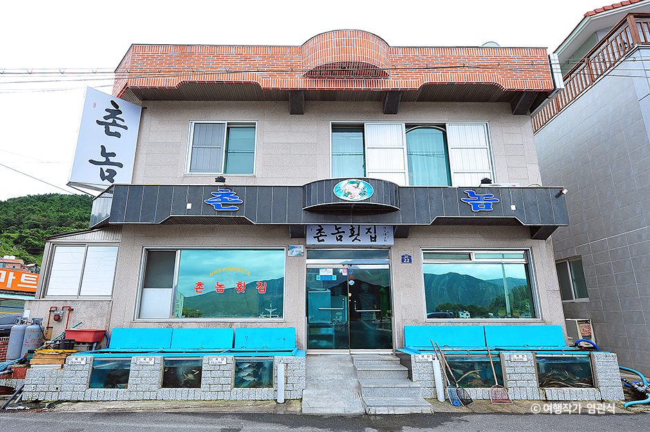 1박 2일 멤버들이 남해 편에서 털게를 먹었던 식당을 기억하는지, 바로 그 식당인데, 미조항에서는 어느 횟집을 가도 맛은 평타 이상이라고 하지만, 이곳은 생선회에 대한 자신감이 남달리 대단한 주인장이 직접 회를 써는 횟집이다. 그때그때 달라지는 모둠회를 주로 하는 집으로, 신선한 제철 생선회를 만개한 꽃 모양으로 푸짐하게 내온다. 맛있고 싱싱하면서 예쁘기까지 금상첨화가 따로 없다. 주문하고 나면, 기본으로 깔리는 반찬들 또한 인근 해안에서 잡히는 해산물과 남해 특산 농산물 위주 깔끔하게 나온다. 다시마, 미역, 멍게, 고동, 오징어, 해삼 등 다채로운 회가 나오기도 전에 술병이 먼저 비워지곤 한다. 회를 먹고 나면 매운탕에 공깃밥을 저렴하게 주문할 수 있는데, 워낙 푸짐하여 맛이 있어도 다 먹기 어려워 아쉬울 지경이다. 회가 아니라도 회덮밥이나 매운탕, 제철 생선구이 등 식사도 가능하다. 식당 이름은 촌놈이지만 맛에 대한 자부심은 도도한 횟집으로, 남해를 방문한다면 미조항에 들러 푸짐한 회 인심을 즐겨 보기 바란다.