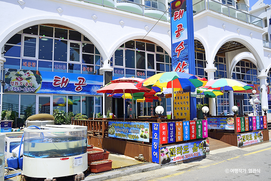 왜목마을의 바닷가에 자리한 태공수산은 박속낙지탕을 잘하는 맛집이다. 무 대신 박으로 국물 맛을 낸 박속낙지탕은 냄비에 박을 넉넉히 깔고, 미나리, 배추, 파, 양파 등의 채소로 풍부한 국물 맛을 내 팔팔 끓인 후 싱싱한 산 낙지를 넣어 먹는다. 낙지는 샤부샤부 하듯 살짝 데쳐 초장에 찍어 부드러운 맛에 마음이 사르르 녹는다. 담백하면서도 시원한 박의 맛이 녹아들어 있는 국물 맛이 인상적이다. 회를 주문하면 밑반찬이 30가지 이상 나오는데 멍게, 돌멍게, 해삼, 개불, 전복, 키조개 관자, 산 낙지, 초밥, 꽁치구이 등이 상다리가 휘어지도록 나온다. 회는 우럭, 도미, 농어, 놀래미와 등이 있고, 자연산으로는 광어, 감성돔, 도다리도 맛볼 수 있다. 더욱 가볍게 먹고 싶다면 새우, 가리비, 바지락, 낙지 등이 듬뿍 들어가 있는 시원한 국물이 일품인 해물칼국수를 추천한다.