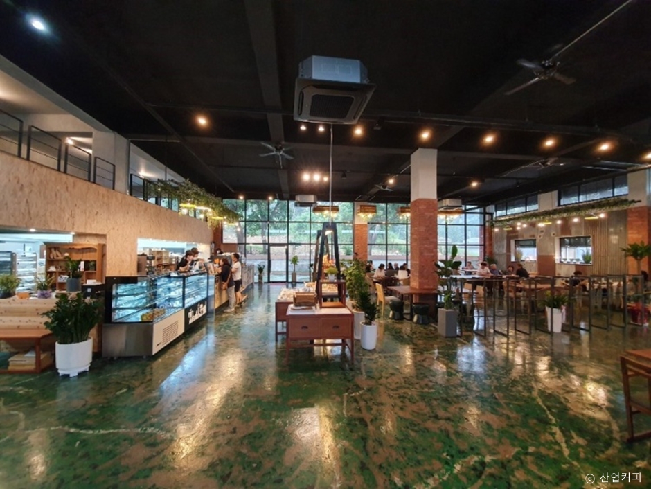 산업커피는 가구공장을 개조한 카페이다. 공장을 개조하여 넓은 공간에 빈티지한 분위기의 인더스트리얼 인테리어가 특징이다. 직접 베이커리를 운영하는 로스터리 카페로서 매일 신선한 빵과 커피를 선보인다. 산업커피만의 깊고 진한 프리미엄 원두도 판매하고 있으며, 파스타, 피자, 샌드위치 등 다양한 브런치 메뉴가 준비되어 있다. 맛있는 식사와 커피, 베이커리를 동시에 즐길 수 있는 브런치 카페이다. 넓은 주차장과 단체석도 준비되어 있어 단체 행사도 가능하다. 야외공간은 반려동물 동반 입장할 수 있다.