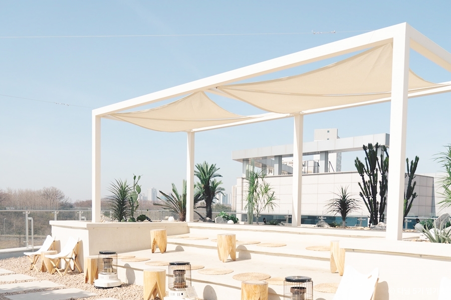 "바다 앞 테라스"는 영종도를 대표하는 오션뷰 카페이다. 바다 바로 앞에 자리하고 있어 통유리 너머 탁 트인 전망을 감상할 수 있다. 특히 휴양지 리조트를 연상시키는 이국적인 분위기의 루프탑에선 따스한 햇살과 상쾌한 바다 향기까지 마음껏 즐길 수 있다. 이곳에선 커피와 요거트, 에이드, 허브차 외에 다양한 베이커리도 맛볼 수 있다. 특히 산타모니카 만다린, 과콰나스 시나몬, 호르헤 엘리아스 로하스 등 평소 접하기 어려운 특별한 원두를 즐길 수 있는 스페셜 브루잉 커피를 선보여 커피 마니아들에게도 많은 호응을 얻고 있다. 시즌에 따라 파인애플이나 한라봉 같은 과일이 통째로 올라가는 생과일주스도 인기메뉴다.