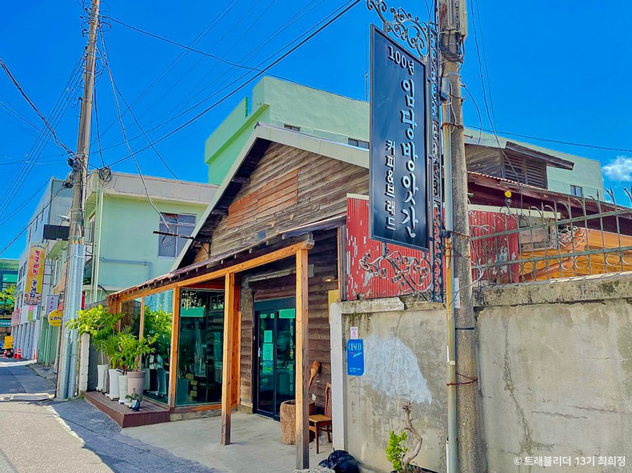 강릉 임당동에서 100여 년 동안 방앗간으로 운영되었던 공간을 재구성한 카페다. 입구에 세워진 절기 방아가 이 같은 공간의 정체성을 상징적으로 보여준다. 100년 임당방앗간은 옛 방앗간의 원형을 오롯이 보존하고 있는데, 카페에 들어서면 가장 먼저 거대한 목조 정맥기와 제분기가 맞아준다. 안쪽에는 고추 빻는 기계 '콩두방'과 기름 짜는 기계가 전시되어 있다. 이곳의 대표메뉴는 '방앗간 라떼'다. 주문 즉시 핸드메이드로 제작하는 부드러운 크림과 귀리가루, 에스프레소가 어우러져 고소한 풍미가 느껴진다. 또 다른 인기 메뉴인 '방앗간 미숫가루'는 강원 지역에서 생산된 곡물 7가지를 직접 방앗간에 맡겨 만든다.