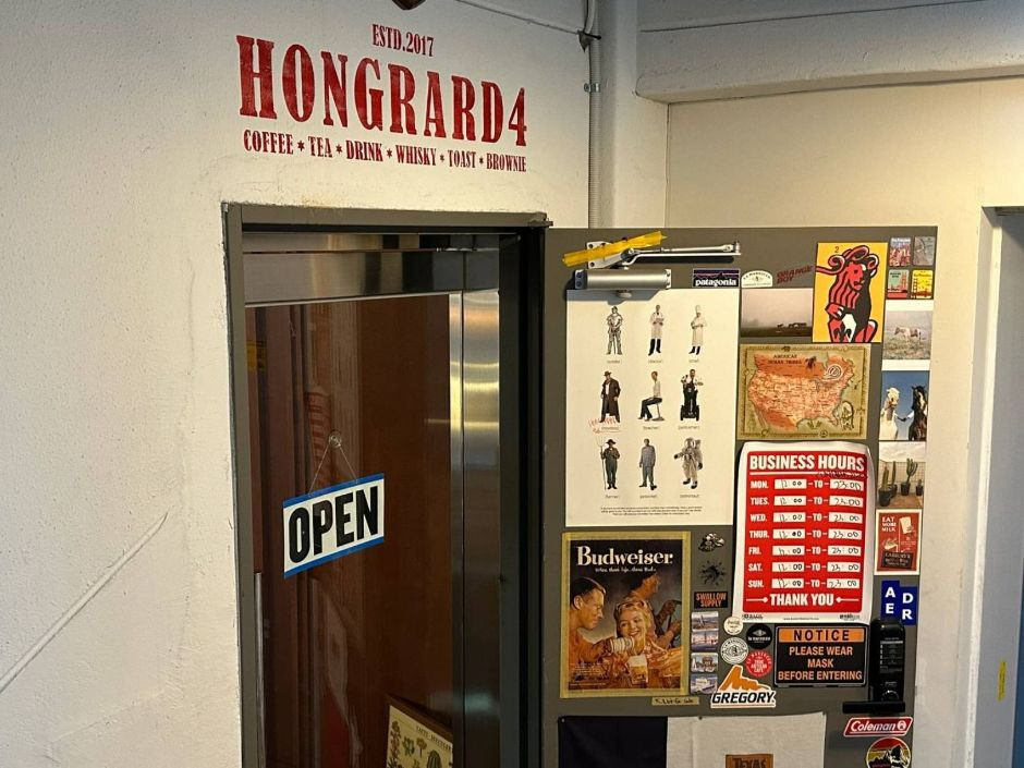 붉은 갈색 계열의 나무 웨인스코팅 반벽으로 프라이빗하게 공간을 구분해 놓은 점과 비슷한 붉은 갈색 계열의 가죽 질감 소파와 다양한 형태의 의자를 매치한 이 카페는 50년대 미국감성의 매장이다.
