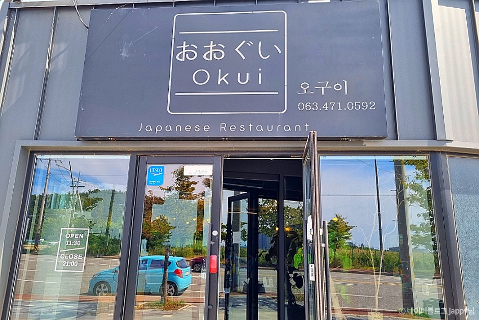오구이는 전라북도 군산시 오식도동, 새만금방조제, 선유도 가는 길에 만날 수 있는 트렌디한 일식 전문점이다. 모둠초밥, 연어초밥, 회덮밥, 장어덮밥처럼 간단한 식사부터 고급 요리와 생선회, 튀김, 구이, 탕 등 술안주까지 다양한 메뉴를 합리적인 가격에 즐길 수 있다. 내부는 블랙과 화이트톤의 편안하고 세련된 분위기가 돋보이며, 안쪽으로는 프라이빗 한 룸 형태의 좌식 테이블도 마련되어 있어 단체 회식, 가족모임, 데이트 장소로 좋다. 주변에 호텔과 숙소가 있어 군산 여행을 온 관광객들도 방문하기 좋은 일식 레스토랑이다. 시그니처 메뉴인 지라시 스시는 성게알인 우니, 광어, 참치 등살, 오도로, 연어 등이 들어간 잘게 썬 회로 별미이고, 숙성된 장어구이가 듬뿍 올라간 우나기 쿠로텐동도 대표적인 메뉴이다.
