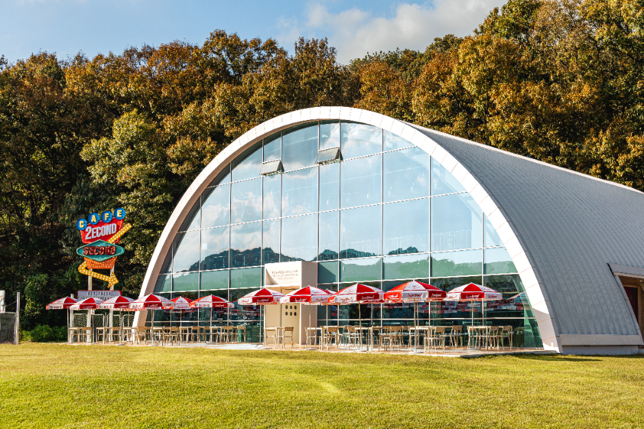 세컨드세컨드는 넓고 우아한 아치형 구조와 레트로풍 네온사인이 어우러진 외관으로 방문하는 사람들의 시선을 사로잡는 카페이다. 마치 1950-60년대 미국을 연상시키는 인테리어는 개방감과 따뜻한 느낌을 동시에 주며, 자연광이 가득한 실내에서 편안한 시간을 보낼 수 있다. 외관과 내부 모두 사진 찍기 좋은 포토존으로, 감각적인 순간을 사진으로 담을 수 있다. 대표 메뉴는 로투스 쿠키를 크림에 찍어먹는 것 같은 로투스크림라떼와 향긋한 바질페스토필링에 토마토를 얹은 바질토마토 베이글이다. 이 외에도 다양한 메뉴가 준비되어 있어 취향에 맞게 선택해 즐길 수 있다. 카페 앞에는 푸른 잔디밭과 넉넉한 야외 좌석이 마련되어 있어 실내는 물론 야외에서도 여유롭게 커피와 디저트를 즐길 수 있다.