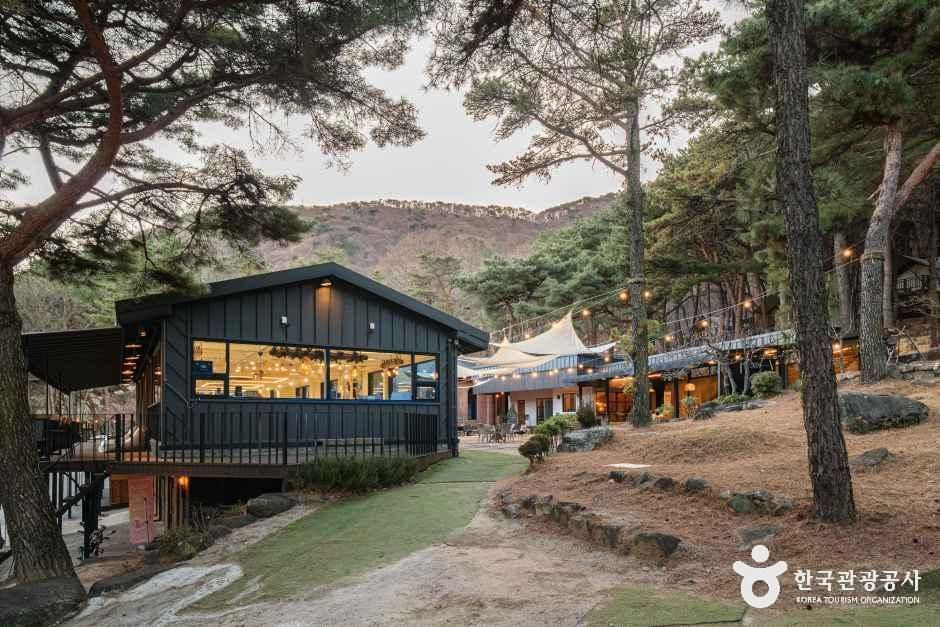카페백동은 경상남도 양산의 깊은 숲속에 자리 잡은 공간으로, 산길 끝에서 마주하는 비밀스러운 아지트와 같은 분위기를 선사하는 장소이다. 이곳은 현대적인 감각의 본관과 옛 교회의 건축 양식을 간직하여 경건하면서도 따뜻한 느낌을 주는 별관, 그리고 탁 트인 잔디마당으로 구성되어 있어 마치 작은 마을을 산책하는 듯한 경험을 제공한다. 핸드드립 세트를 주문하면, 야외 캠핑의 감성을 살려 원두를 직접 갈아 커피를 추출하는 바리스타 체험이 가능하다. 겨울에는 야외 장작불 주변에 둘러앉아 마시멜로나 쫀드기 같은 추억의 간식을 구워 먹을 수 있다. 카페백동은 다양한 형태의 야외 좌석을 갖추어, 자연과 교감하는 입체적인 휴식 문화를 제공하는 공간으로서 의미가 깊다.