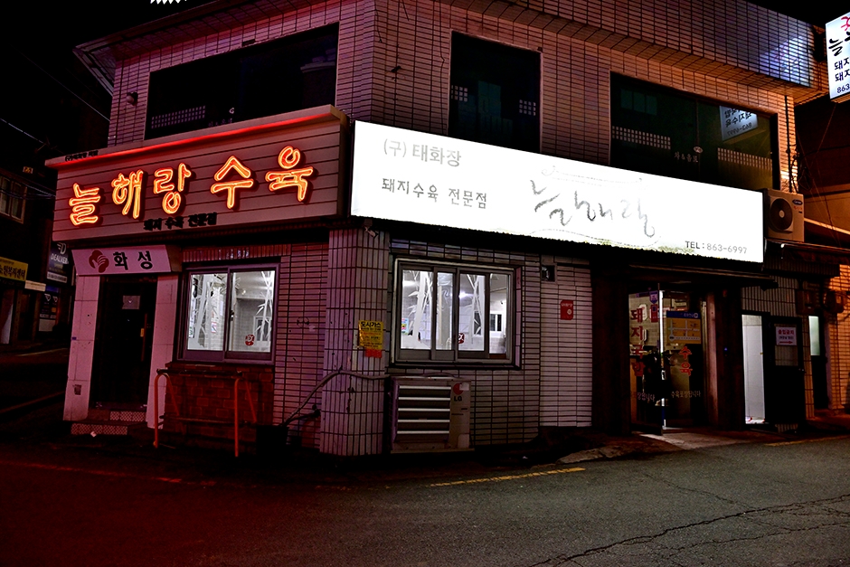 늘해랑은 '늘 해와 함께 살아가는 사람들' 이란 뜻을 담은 순우리말이다. 수육을 따로 맛볼 수 있는 수육 백반이 가장 인기가 많다. 육수 무한리필이 가능하며, 수육과 함께 먹는 가오리 식해와 직접 만든 찹쌀 순대가 별미다. 가오리와 무 대파 양념 등을 넣고 24시간 숙성하는 가오리 식해는 따로 구매하는 손님이 많을 정도로 인기다. 한약재를 넣고 삶은 듯 연갈색을 띠는 수육은 윤기가 흐르고, 연갈색을 띠는 국물은 가볍고 담백하다. 조미료를 넣지 않고도 특유의 고소한 맛을 냈다. 늘해랑 2호점이 있는 곳에 주차할 수 있다. 부산 시민공원, 송상현광장, 전포 카페거리가 인접해 있어 함께 둘러보기 좋다.