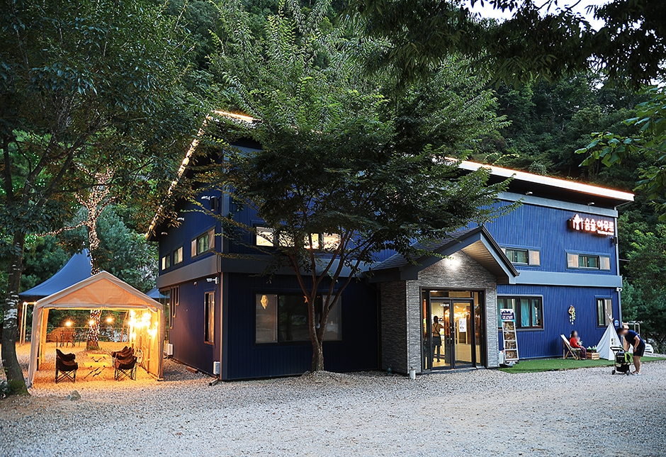 강원도 원주 칠봉유원지 안쪽에 위치한 전원 카페다. 숨숲 아무르는 신나무가 숨 쉬는 숲이란 뜻으로 주변에 신나무 군락지가 있어 지어진 이름이다. 계곡 바로 앞에 있어 조망이 시원스럽기도 하고, 캠핑장이 함께 있어 야외에서 빵과 차를 즐길 수 있는 여러 시설과 장치가 마련되어 있다. 숲속에 길게 자리 잡은 연못가에도 해변처럼 작은 모래사장이 있는 계곡 안에도 의자와 작은 테이블이 놓여있어, 아이들과 물놀이를 겸한 카페 나들이 장소로 좋은 곳이다.