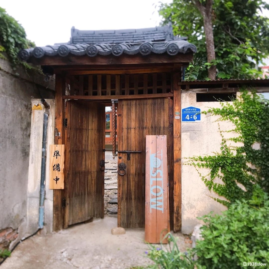 1938slow는 강릉시 좁은 골목길에 있는 구옥을 개조해서 만든 한옥 카페이다. 고즈넉한 분위기에서 사계절이 변화하는 것을 느끼며 즐길 수 있는 카페이다. 주차장을 갖추고 있지 않아 차를 이용하는 고객은 주변 골목, 건영택배사 주차장, 해람중학교 옆 공영주차장을 이용해 주차한 후 좁은 골목길 끝에 있는 카페를 찾아가야 한다. 반려동물을 동반할 경우, 캐리지를 가지고 가야 한다. 주주베, 차이, 쑥, 커피, 팥을 넣은 우유가 대표 메뉴이고 명란 바게트로 구성된 브런치 메뉴를 즐길 수도 있다. 저녁에는 가벼운 식사 또는 안주를 곁들여 맥주를 즐길 수도 있다.