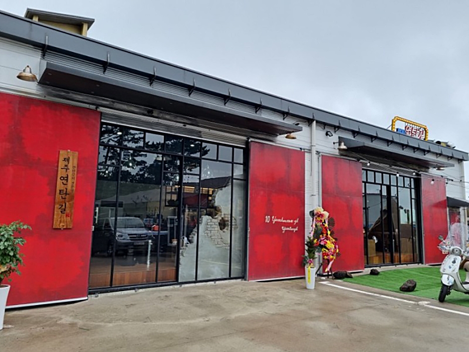 제주연탄길은 한라수목원 근처에 있다. 천장이 높고 개방감 있는 공간에 레트로한 소품이 가득하고 둥근 테이블에 타일을 붙이는 등 박물관에 들어와 있는 듯한 재미있는 고깃집이다. 고기는 연탄불에 올려 굽고, 주전자 라면, 추억의 도시락 등 곁들임 음식도 컨셉에 충실한 흑돼지 전문점이다. 주변 여행지로 한라수목원, 수목원테마파크 등이 있다.