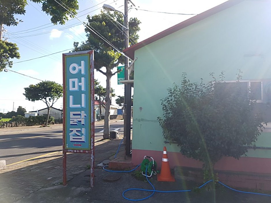 어머니 닭집은 성산중학교 근처에 있다. 소박한 분위기에 일명 '시장 치킨' 집으로 단골이 많은 성산읍 도민 맛집이다. 메뉴는 프라이드, 양념, 반반, 육계 백숙으로 단순하고, 대표메뉴인 프라이드치킨의 경우 튀김옷이 두껍지 않고, 카레 맛이 나고, 양념치킨 양념을 준다. 테이크아웃만 가능하며 전화 주문을 하고 가도 어느 정도 대기가 필요하다. 주변 여행지로 섭지코지, 광치기해변, 성산일출봉 등이 있다.