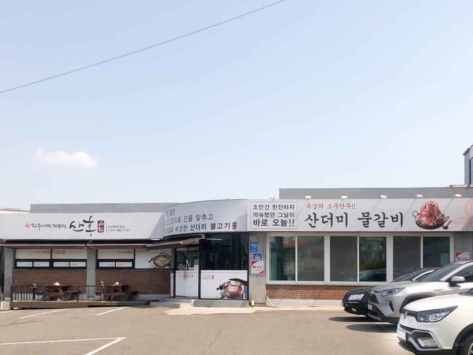 산홍 오산평택직영점은 오산역 근처에 있는 냉면 맛집이다. 대로변에 단독 건물로 있어서 어렵지 않게 찾을 수 있고 식당 앞에 주차 공간이 넓게 있다. 진주에서 유명한 냉면집 산홍 본점이 직영 운영하는 평택맛집으로 내부는 넓고 깔끔하다. 메뉴는 진주물냉면, 산홍비빔냉면, 산더미물갈비, 산홍불고기, 소고기육전, 왕만두 등이 있다. 그중에 산더미물갈비는 얼큰한 육수에 숙주와 야채 위에 얇게 슬라이스한 소불고기를 올려서 끓여 먹는 메뉴다. 또 다른 인기 메뉴 소고기육전은 곡물가루 세 가지를 입혀서 만드는데 찰기와 쫀득함을 느낄 수 있다. 진주냉면은 감칠맛 나는 육수에 부드러운 면이 잘 어우러져 구수한 맛을 낸다.
