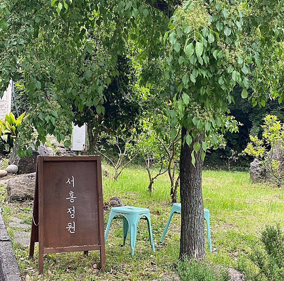 서홍정원은 서귀포 걸매생태공원 근처 솜반천에 있다. 가정집처럼 보이는 입구로 들어가면 안쪽에 '비밀의 정원'이 있다. 야외 테이블에는 사계절 푸른 나무가 있고, 실내는 빛이 잘 드는 창과 다양하고 빈티지한 테이블이 있고 테라스에 앉아 숲을 감상할 수 있다. 시그니처 메뉴로 아몬드비엔나와 카푸치노번이 있다. 시골집 미숫가루는 직접 재배한 9가지 곡물로 만들었으며, 더치커피와 드립백의 경우 테이크아웃할 수 있다. 주변 여행지로 천지연폭포, 서귀포 칠십리시공원 등이 있다.