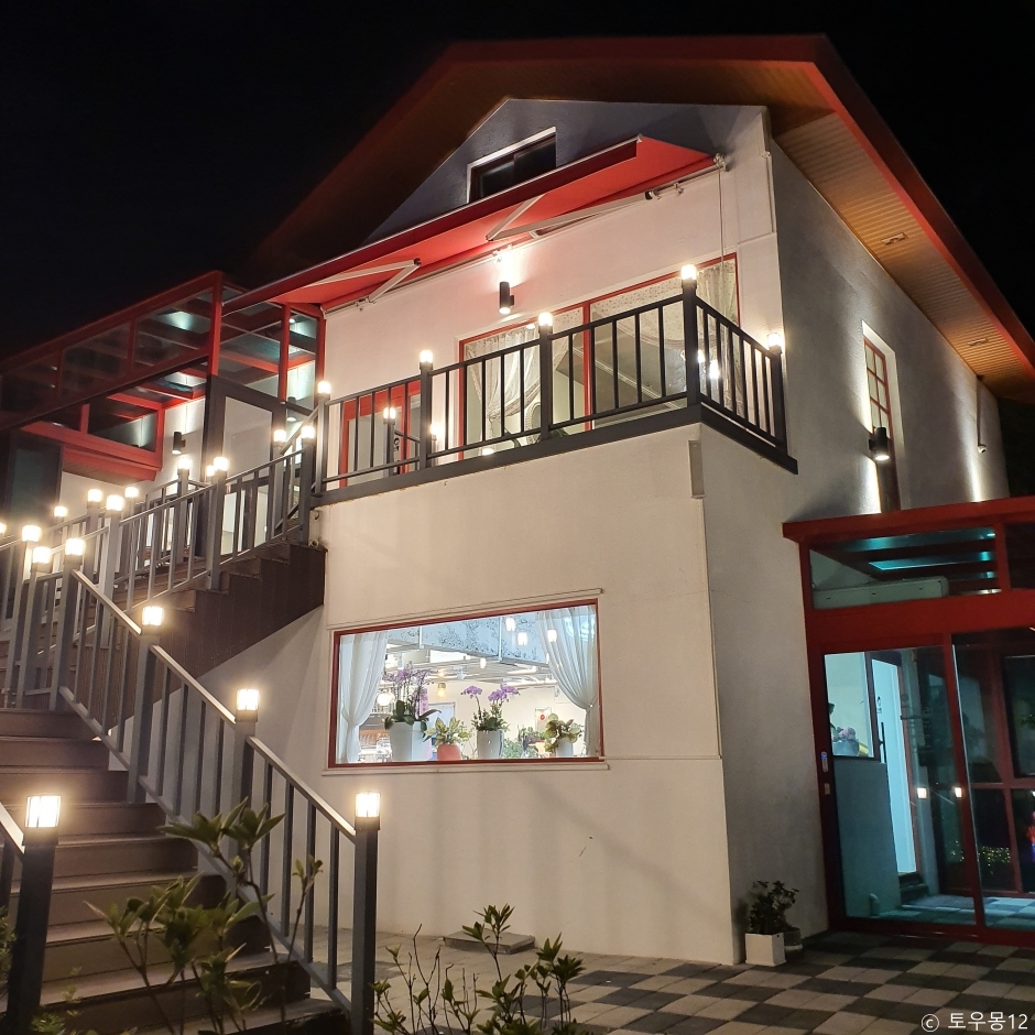 경기도 양주시 마전동에 있는 브런치 카페이다. 개인주택을 개조하여 만든 곳으로, 뒷마당에 잔디마당이 있다. ,1층과 2층 그리고 잔디 마당에 있는 좌석을 이용할 수 있다. 내부는 시멘트가 날 것으로 보이는 천장, 연한 녹색 벽, 은은한 조명, 파란 식물의 화분, 흰색 벽 등으로 편안한 느낌이다. 디저트, 케이크류가 있고, 아이용 음료가 따로 있다. 2층은 테라스로 나갈 수 있게 연결되어 있다. 테라스에서 잔디마당과 산에 있는 나무를 보며 힐링의 시간을 가질 수 있다. 잔디마당에 아이용 자동차가 있어, 아이들 놀기에 좋다. 가까이에 천보산, 레이크우드 CC가 있다.