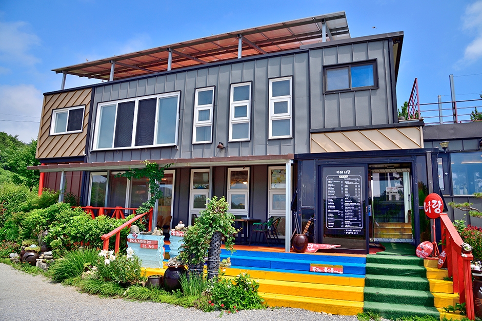 여수 화양면에 자리한 너랑은 소나무 숲길 안쪽에 있는 자연 속 카페이다. 코발트 빛 아름다운 여수 바다를 조망하는 넓은 정원에는 카페 이름을 따서 지은 알파카 ‘너랑’과 ‘나랑’을 비롯해 아기자기한 소품들이 많다. 카페에서 알파카 먹이를 판매하여 직접 먹이 주기 체험을 할 수도 있다. 이외에도 강아지와 닭, 토끼, 공작새 등 다양한 동물들을 만나볼 수 있다. 또한 소나무 숲 사이에 설치된 해먹과 어린아이들이 타기 좋은 자전거 등이 있어 어린이와 함께 방문하기 좋은 카페이다. 메뉴는 커피는 물론 빙수, 브런치 등 남녀노소 모두가 편하게 즐길 수 있도록 구성되어 있다.
