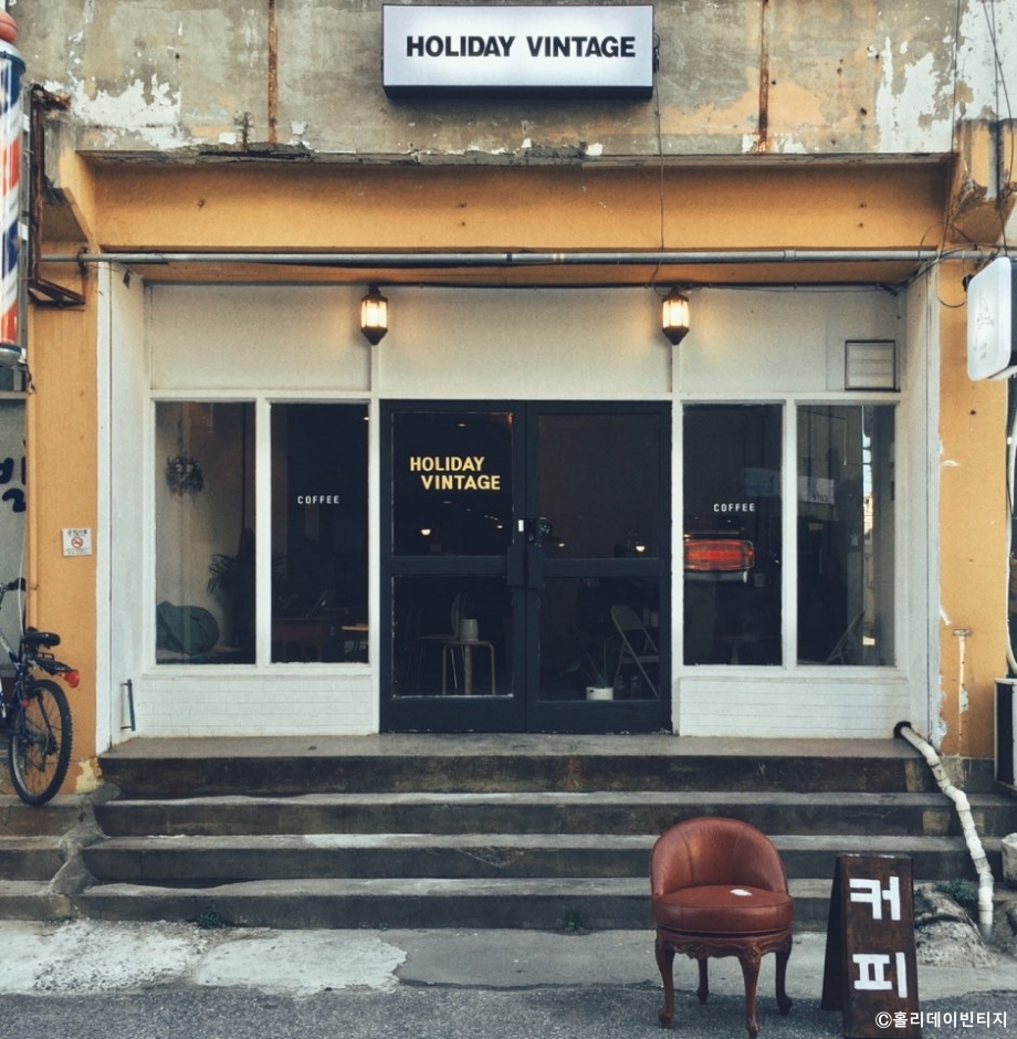 홀리데이빈티지는 강원도 강릉시 동부시장 안에 있는 디저트 카페이다. 전혀 카페가 있을 것 같지 않은 시장 안으로 지도를 따라가면 나온다. 이곳은 이색 디저트로 유명한 곳이다. 돌 모양을 한 몽돌과 백돌이 유명하다. 몽돌이나 백돌을 시키면 외양은 돌과 똑같이 생긴 디저트가 나온다. 몽돌은 반을 가르면 흑임자 맛 무스케이크 같은 스타일이다. 덜 녹은 상태에서 먹으면 아이스크림 같고 다 녹은 뒤에는 상당히 부드러운 맛이다. 넓은 곳은 아니지만, 비주얼이 압도적이라 인스타그램을 하는 고객층에 인기가 많은 곳이다. 주차는 시장 안에 있어 자체 주차장을 갖고 있지는 않으나 공영 주차장을 이용할 수 있다. 평일에는 유료여서 1시간 무료 쿠폰을 제공한다. 평일 6시 이후나 주말은 무료로 사용할 수 있다.