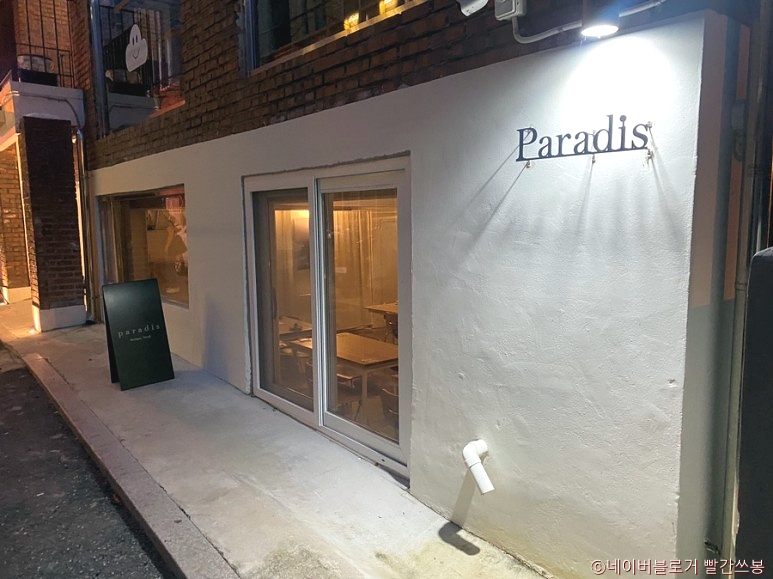 파라디는 서울지하철 2호선 성수역 3번 출구에서 약 720m 거리에 있는 경수중학교 인근에 있는 와인 바 레스토랑이다. 별도의 주차장은 마련되어 있지 않다. 매장은 어두운 분위기로 무드감을 주며 매장 중앙에 오픈 키친과 바 테이블이 놓여 있다. 흑돼지 잠봉, 세미 드라이 토마토 & 생치즈(한정), 갑오징어, 항정살 구이 등 다양한 메뉴와 와인류가 있다. 서울숲이 가까이에 있어 가볍게 산책할 수 있고, 성수동 카페거리, 성수동 구두 테마공원, 뚝섬유원지 등이 있어 연계 관광을 할 수 있다.
