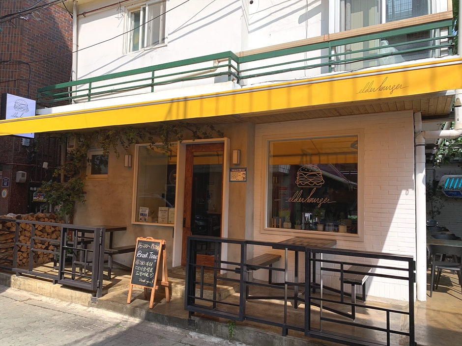 엘더버거는 수인분당선 서울숲역 5번 출구 인근에 있다. 주차장은 따로 없다. 복잡한 도심 속에 있다 보니 버스나 지하철 등 대중교통을 이용하는 것이 편리하다. 노란 차양이 바로 옆 서울숲 공원과 잘 어울린다. 이곳은 매장 앞에 패티를 구울 때 쓰는 장작더미가 쌓여 있고 내부는 초록 식물들로 정원 분위기를 만들었다. 대표 메뉴는 엘더클래식이고 이외 베이컨치즈버거, 칠리치즈 버거, 벨리 버거, 포레스트 버거 등 다양한 버거가 있다. 식당 인근에 성수동카페거리, 성수동구두테마공원, 서울숲, 뚝섬유원지 등이 있어 산책하며 둘러보기 좋다.