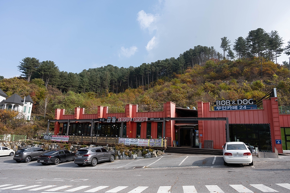 본가곱돌숯불닭갈비는 가평군 상면에 있는 닭갈비 막국수 전문점으로 아침고요수목원 근처에 있다. 가평에는 숯불닭갈비와 막국수 식당이 매우 많은데 이 집은 다른 집과는 차별화된 특색이 있다. 닭갈비를 숯불에 초벌구이해서 가져오는 것은 동일하나 테이블에서 숯불이 아니라 곱돌 돌판에 구워 먹는다. 숯불 직화가 아니라 덜 타면서도 이미 배인 숯불 맛을 지킬 수 있다. 닭갈비를 먹은 후 막국수를 맛보는 것은 빼놓을 수 없다. 잣을 넣은 잣 막국수를 비빔 혹은 물국수로 즐길 수 있다. 또 하나의 특징은 반려견 동반이 가능한 식당이다. 내부로 들어서면 일반인을 위한 좌석과 반려견을 위한 좌석이 구분되어 따로 식사를 할 수 있게 되어 있다. 반려견 동반석에는 식탁 옆에 반려견 나무 침대를 배치해서 반려견을 옆에 두고 식사를 할 수 있다. 외부에는 별도의 반려견 전용 운동장이 있어 신나게 뛰어놀게 할 수 있다. 주차장은 넓고 안내하는 사람이 있어 편리하게 이용할 수 있다.