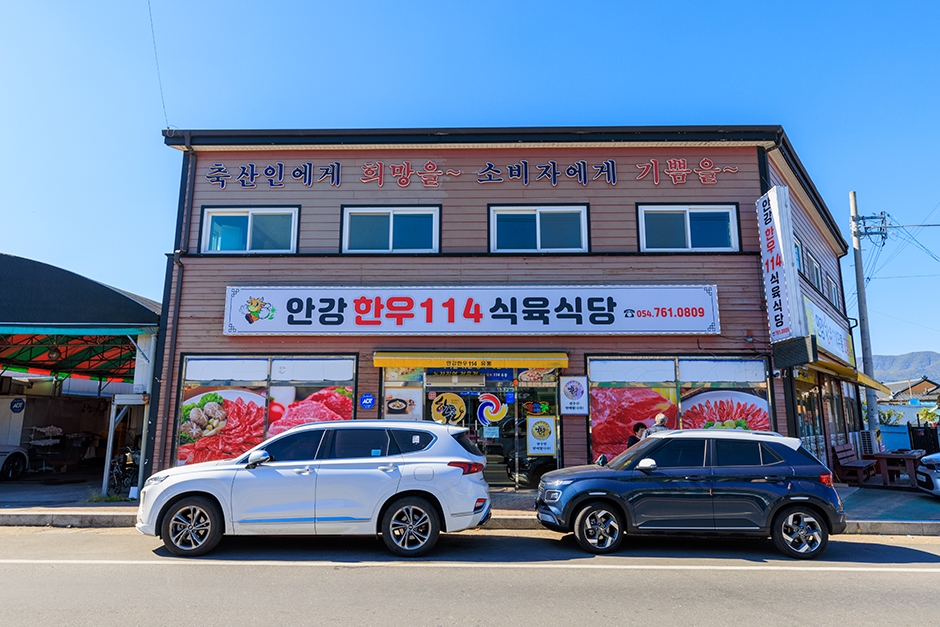한우114숯불은 경상북도 경주시 안강읍 안강리에 있는 정육식당이다. 현대적인 감각이 돋보이는 외관과 깔끔한 분위기를 연출하는 인테리어가 눈에 띈다. 내부에는 단체석이 마련되어 있어 각종 모임을 하기 좋다. 대표 메뉴는 한우 등심, 한우 갈빗살 등 각종 구이용 한우다. 정육점에서 마음에 드는 육류를 구입한 후 식당으로 가서 상차림 비용을 지불하면 직접 구워서 먹을 수 있다. 이 밖에 육회, 한우탕, 소고기국밥, 물냉면, 비빔냉면, 소면 등이 준비되어 있다. 강동IC에서 가깝고, 주변에 세계문화유산 경주 양동마을과 사적 제154호 옥산서원이 있어 식전이나 식후에 방문하기 수월하다.