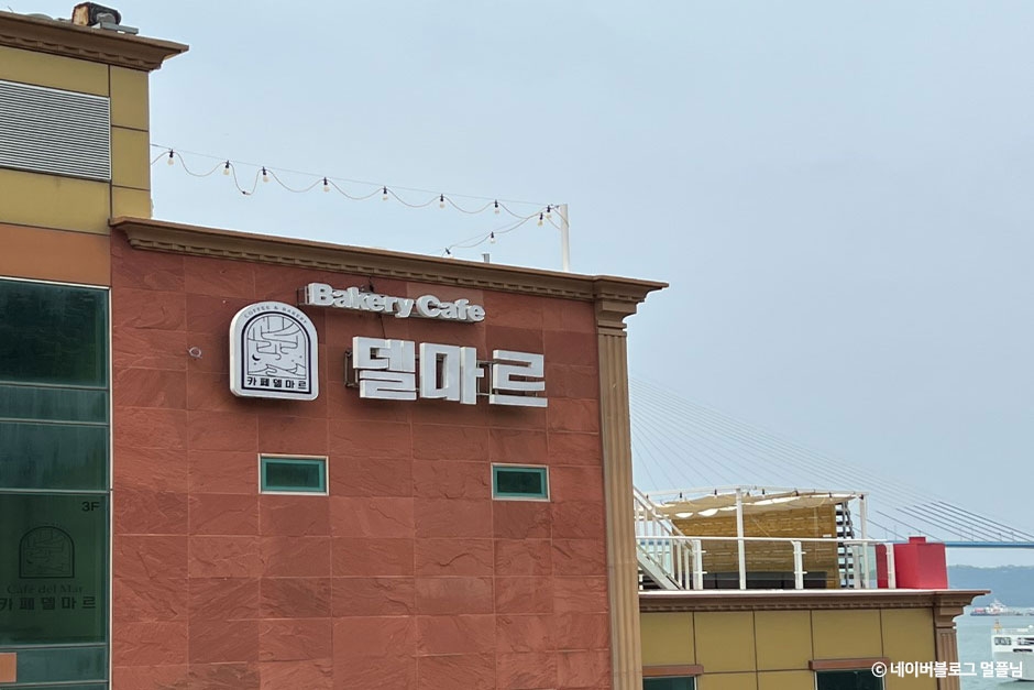 목포 스카이워크 근처에 있는 카페 델마르는 목포 해양대학교를 지나면 우측으로 카페가 보인다. 내부는 총 3, 4층으로 되어있으며, 4층은 루프탑이 마련되어 있어 하이라이트 포토존에서 사진을 남길 수 있다. 오른쪽으로는 목포대교가 보이고 왼쪽으로는 무지개다리가 보이는데, 카페 1층으로 가면 무지개다리가 연결되어 있어 커피를 마신 뒤 사진을 찍으러 가기에 편하다. 다 같은 의자와 테이블로 통일하지 않고 다양한 공간들이 준비되어 있어 취향에 맞는 자리에서 바다를 보며 휴식할 수 있다는 점이 좋다. 근처에 유달산, 목포 해상케이블카, 연희네 슈퍼 등 유명 관광지가 많아 함께 둘러보기에 좋다.