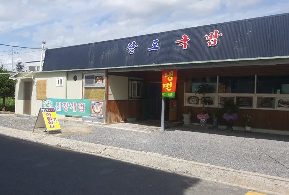 창녕군 남지읍 남지리에 있는 팔도국밥은 구수하면서도 깔끔한 국물 맛과 푸짐하게 들어간 고기 맛이 잘 어울리는 곳이다. 국밥류는 돼지국밥, 내장국밥, 섞어국밥, 순대국밥, 뼈해장국이 있고, 냉면, 만두, 머리고기 수육, 모듬순대, 순대, 감자탕, 순대전골도 있다. 대표 메뉴는 돼지국밥이다. 고소한 사골국물 속에 머리고기와 부추를 넣어서 끓인 돼지국밥은 맛이 좋아 현지인들의 사랑을 받고 있다. 아주 특별한 맛의 음식점이라기보다는 기본에 충실한, 푸짐하고 가성비 좋은 식당이다. 바깥쪽에는 입식 테이블이 방 안쪽은 좌식 테이블이 설치되어 있다. 주차는 가게 앞에 몇 대 주차할 수 있는데 부족하여 가게 앞에 주차하긴 쉽지 않다. 그래도 읍내고 이면 도로라 주위에 주차할 곳은 많다. 낙동강 남지개비리길, 남지체육공원이 인접해 있어 함께 둘러보기 좋다.