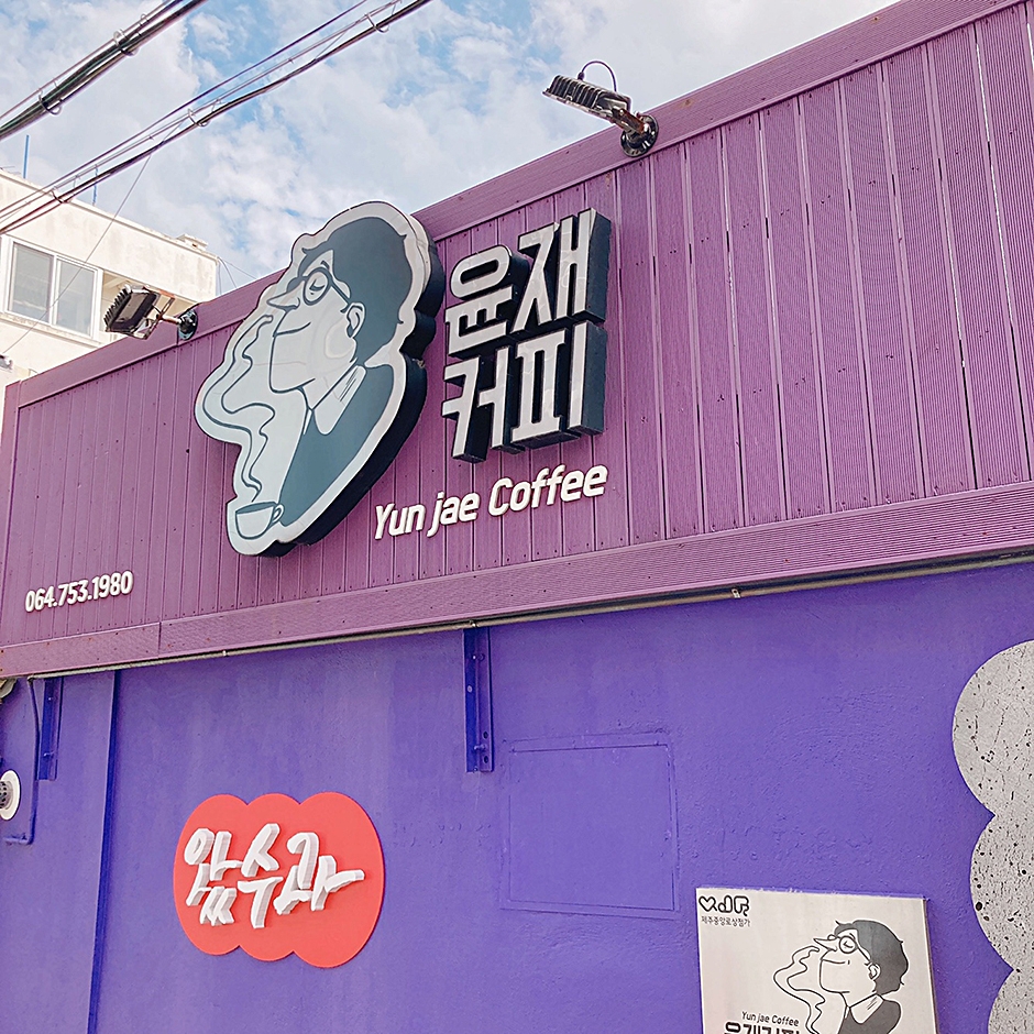 윤재커피는 제주시 동문시장 근처에 있다. 제주 원도심의 구옥을 개조하였고 아기자기한 소품과 함께 작은 정원이 있는 카페이다. 제주산 식재료를 이용해 식음료를 만들고, 엄마표 기름떡의 경우 제주 로컬음식인 기름떡을 모티브로 제주산 쑥, 당근, 플레인 세 가지 맛에 전복 조림과 블루베리 잼, 애플망고 잼을 함께 제공한다. 이 밖에 아인슈페너, 흑임자 라테 등도 인기 메뉴이다. 주변 여행지로 제주 원도심, 제주목관아 등이 있다.