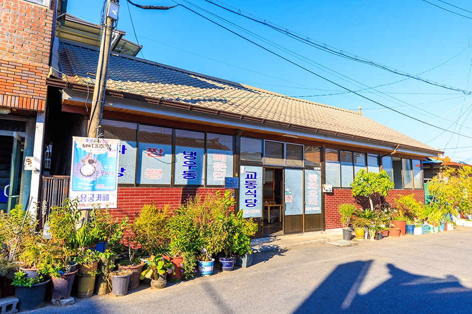 교동식당은 경상북도 예천군 용궁면 읍부리에 있다. 50년 넘게 영업해온 이곳은 SBS 시사 교양 프로그램 생활의 달인에 소개되었었다. 세월의 흔적이 엿보이는 외관과 예스러운 분위기를 연출하는 인테리어가 눈에 띈다. 대표 메뉴는 감칠맛과 고소함을 느낄 수 있는 간장 육수로 맛을 낸 냉우동이다. 이 밖에 짜장면, 간짜장면, 짬뽕면, 우동, 매운면, 볶음밥 등도 준비되어 있다. 점촌함양IC에서 가깝고, 주변에 회룡포전망대와 삼강주막마을이 있다.