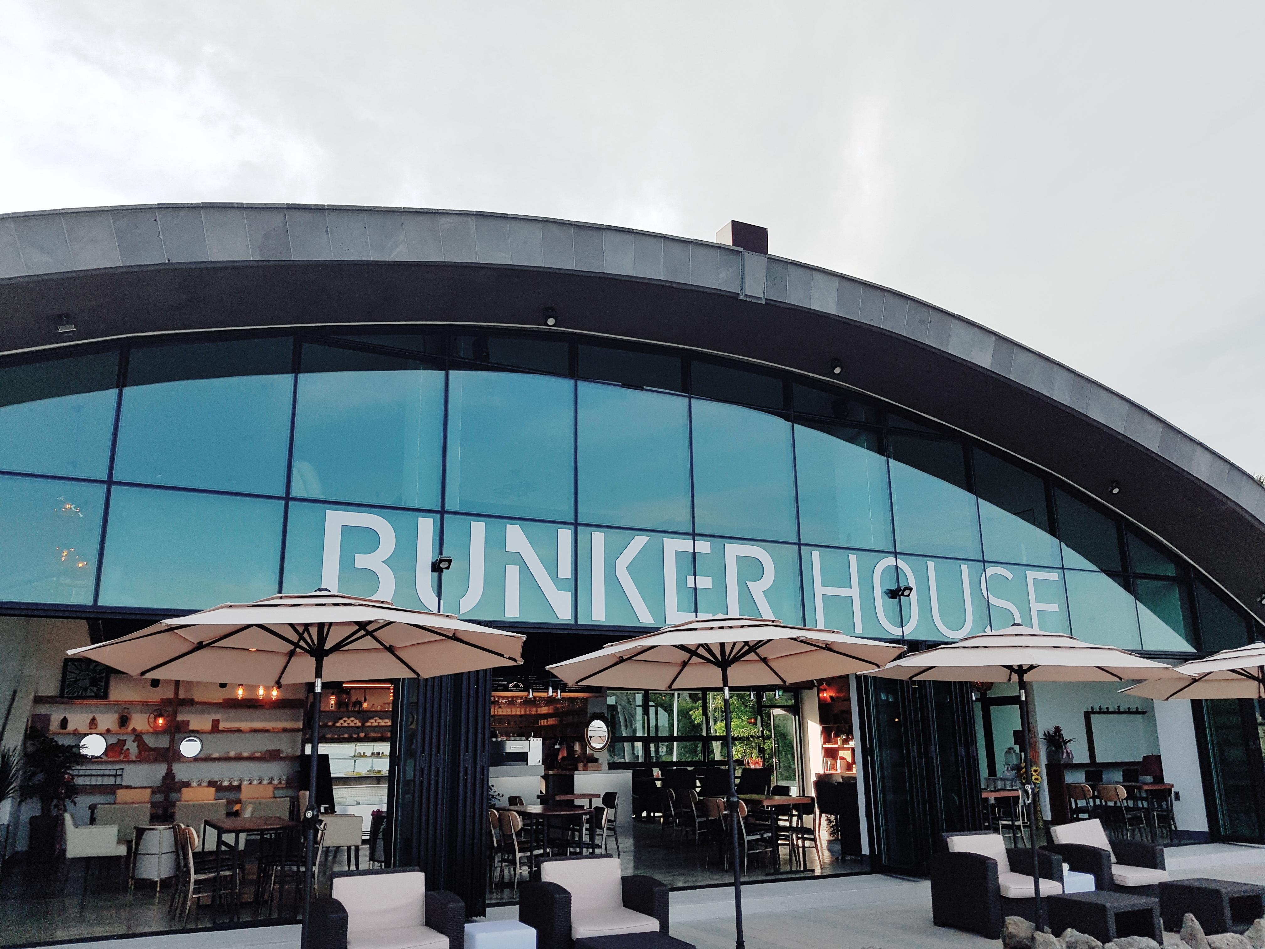 벙커하우스는 법환포구 근처 범섬이 보이는 바닷가, 올레 7코스가 지나는 길에 있다. 카페 전체가 반원형의 벙커 모양을 하고 있으며 1, 2층 넓은 공간에 바다를 향해 창이 나 있다. 대표메뉴인 봄날은 한라봉, 키위 스무디이고, 다양한 제철 스무디, 빙수, 에그타르트, 베이커리와 디저트를 맛볼 수 있다. 차림새가 예쁘고 바다를 배경으로 인증샷을 찍을 수 있어 여행자들에게 인기이다. 2층에는 8명 이상 함께 앉을 수 있는 큰 테이블이 있어 단체 모임하기 좋다. 반려동물은 실내에서는 동반이 불가하다.