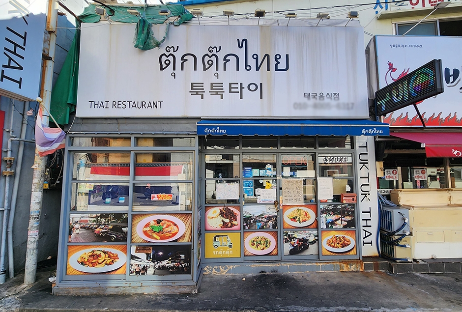 마산 합성동 뒷길에 있는 툭툭타이는 이국적인 태국 음식점이다. 가게 내부에는 태국 관련된 소품들이 많아 이색적이다. 태국 음식뿐 아니라 인도네시아나 베트남 음식도 있는 동남아 전문 음식점이다. 뿌팟봉커리은 카레를 곁들인 게 튀김인데 껍질을 그대로 먹을 수 있을 만큼 부드럽다. 팍풍파이댕은 모닝글로리 볶음이다. 고수 향이 아주 가득한 똠양꿍은 아주 매력적인 맛이다. 영업시간이 끝나기 전에도 재료가 종종 동이 나는 인기 맛집이다. 주차장이 주변 유료 공용주차장에 주차할 수 있다. 팔룡산돌탑공원, 애니멀스토리 등이 인접해 있어 함께 둘러보기 좋다.