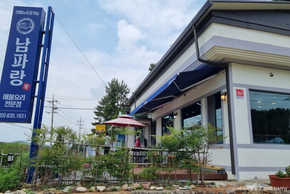경상남도 고성군 상족암 군립공원에서 5분 거리에 있는 남파랑가는 해물요리 전문점이다. 깔끔하고 정갈한 식당 내부는 넓은 홀에 입식 좌석과 방에는 좌식 좌석으로 마련돼 있다. 남파랑가의 메인 메뉴는 해물탕으로 싱싱한 재료의 전복, 가리비, 문어, 새우, 꽃게, 갑오징어 등이 풍부하게 들어가 있어 해산물이 우러난 국물은 얼큰하고 시원하다. 또한 홍합, 바지락, 백합조개, 새우, 게 등 해산물이 듬뿍 들어가 있는 해물칼국수 전골도 인기가 높으며, 해물뚝배기는 몸에 좋은 전복이 들어가 있어 진하고 칼칼한 국물이 진국이다. 고성 공룡 박물관에서 차로 5분 거리에 있고 어린이들이 먹을 수 있는 메뉴들도 있어 박물관 관람 후 주변 맛집을 찾는 관광객들에게 추천되고 있는 맛집이다.