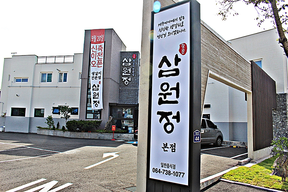 삼원정은 제주 중문관광단지 근처에 있다. 매일 아침 서귀포 수협에서 생갈치를 공급받아 요리하는 제주 갈치전문점이다. 인기 메뉴는 해물통갈치조림으로 갈치 한 마리를 넣을 수 있는 긴 냄비에 통문어, 활전복, 딱새우 등의 해물을 넉넉히 넣고 함께 졸여 먹는다. 밑반찬으로 돔베고기, 빈대떡, 통멸치젓이 나오며 성게미역국이 밥과 함께 나오고 후식으로 수정과가 제공된다. 주변 여행지로 중문색달해수욕장, 천제연폭포 등이 있다.