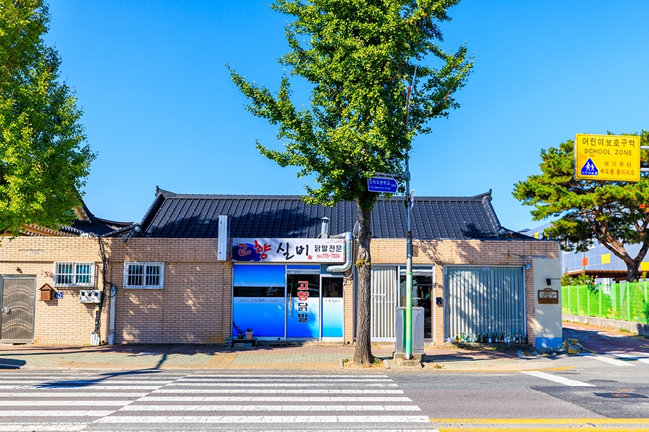 고향실비타운은 경상북도 경주시 사정동에 있다. 세월의 흔적이 엿보이는 외관과 예스러운 분위기를 연출하는 인테리어가 눈에 띈다. 대표 메뉴는 매콤한 맛이 일품인 뼈닭발이며, 무뼈닭발도 인기가 많다. 닭발에 소면을 비벼서 먹으면 또 다른 별미다. 이 밖에 데쳐서 나오는 오징어와 두부김치도 판다. 경주 IC에서 가깝고, 주변에 첨성대를 비롯해 국립경주박물관, 경주교촌한옥마을 등 경주의 유명 관광지가 있다.