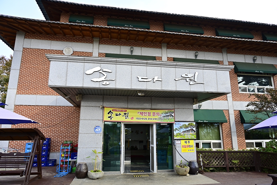 옥과 IC에서 5분 거리에 있는 송다원은 닭, 오리 능이백숙 삼계탕 전문점이다. 전통 정자가 맞이하는 이곳은 한옥 지붕 양식으로 지은 2층 건물로 넓은 주차장에 높게 자란 소나무들이 멋진 전경을 더한다. 실내와 외부에 각각 넓은 입식 테이블을 비롯하여 2층에는 연회장과 객실이 있어 단체 방문 및 MT까지도 가능하다. 능이 삼계탕은 오가피, 엄나무, 황기, 작약, 두충, 당귀, 숙지황 등 한약재가 20가지 들어가 있다. 곡성생태체험관, 무창체험마을 등이 주변에 있어 연계 관광하기 수월하다.