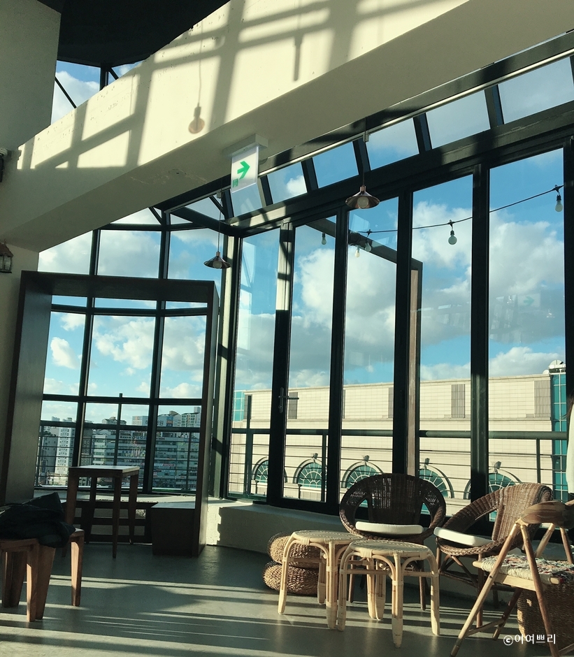 부천시 석천로에 있는 루프탑 대형 카페로 10층에 있다. 내부는 10층 전체가 카페로 공간이 넓고, 전면이 통창 유리로 되어 있으며 층고가 높아 쾌적한 느낌이다. 높은 천정에 하늘하늘한 흰색 시폰 커튼이 늘어져 있고, 별 모양의 조명을 매달아 아늑한 분위기를 자아낸다. 우드톤의 테이블과 의자가 깔끔하게 정리되어 있다. 여러 섹션으로 나눠진 분위기 있는 자리, 감성 자리, 조용한 자리 등 각자만의 컨셉이 있는 공간들이 있다. 제주에서 볼 수 있는 낮은 돌담과 그 안에 테이블과 식물을 두어 색다른 공간을 연출했다. 라탄 테이블과 흔들의자, 창가에는 커플 등 둘이 앉을 수 있는 조용한 공간을 만들었다. 야외테라스는 고층 뷰로 탁 트인 뷰 감상을 할 수 있는 좌석으로 마련되어 있다. 단체석도 있어 모임이 가능하다. 테이블마다 스타일이 다르게 다양하게 인테리어 해놓아 골라 앉는 재미가 있다. 다양한 커피와 음료가 있으며 커피는 구수허니와 베리허니 중 원두 선택이 가능하다. 디저트용 베이커리도 구매할 수 있다. 7호선 부천시청역 3번 출구에서 가깝다.