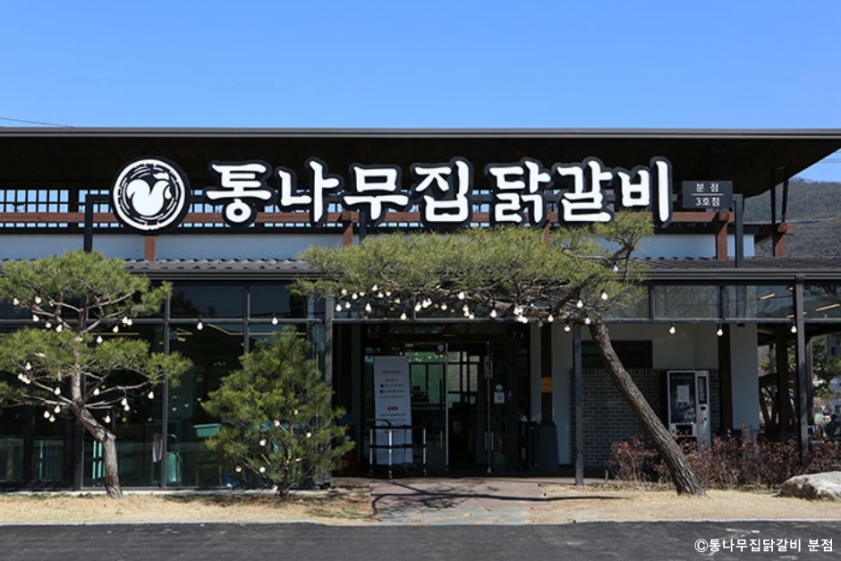 통나무집닭갈비 분점은 강원도 춘천시에 있는 닭갈비 전문점이다. 통나무집 닭갈비는 춘천에 여러 곳이 있는데 2호점은 숯불닭갈비를 하는 곳이고 3호점은 철판닭갈비를 하는 곳이다. 대기가 많은 식당인데 회전율이 높아 오래 기다리지는 않는다. 닭갈비와 같이 먹을 수 있는 메뉴가 감자부침이 있다. 식사로는 동치미 물막국수나 명태회 비빔막국수를 먹을 수도 있다. 철판닭갈비를 먹은 경우에는 볶음밥을 만들어 먹을 수도 있다. 어린이들을 위한 수제돈까스도 있다. 주차는 매장 앞에 널찍한 전용 주차장이 있어 편하게 이용할 수 있다.
