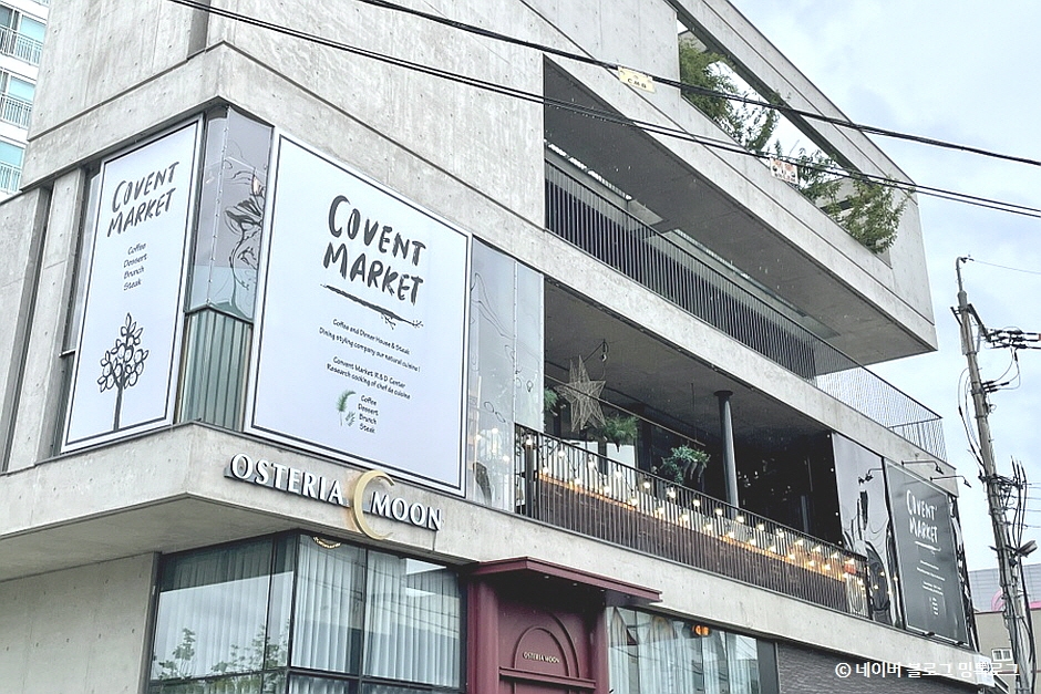 코벤트마켓은 신선함과 자연주의를 바탕으로 낮에는 시골풍의 따뜻한 브런치를, 밤에는 사계절이 담긴 음식을 제공하는 Natural Bistro이다. 농장과 바다에서 공수해 온 신선한 재료들은 정교하게 디자인되어 플레이팅 되며, 많은 테이스팅을 거쳐 완성된 커피와 음료는 음식의 풍미를 한껏 더 한다. 이 집의 시그니처 메뉴 중 코벤트 가든 샐러드를 찾는 손님들이 특히 많다. 신선한 재료를 사용하는 만큼 고객들에게 좋은 평을 받고 있다. 반려동물 동반도 가능하다.