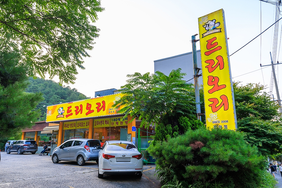 드리오리 갈마점은 대전광역시 서구 갈마동에 있다. 깔끔한 외관과 차분한 분위기를 연출하는 인테리어가 눈에 띈다. 내부에는 단체석이 마련되어 있어 각종 모임을 하기 좋다. 대표 메뉴는 국내산 생오리로 만든 오리 누룽지 백숙이다. A 코스 요리 4인이나 B 코스 요리 2인을 주문하면 오리 로스, 오리 주물럭, 오리 훈제, 오리 영양죽 등을 모두 맛볼 수 있다. 유성IC에서 가깝고, 주변에 엑스포과학공원과 한밭수목원이 있다.