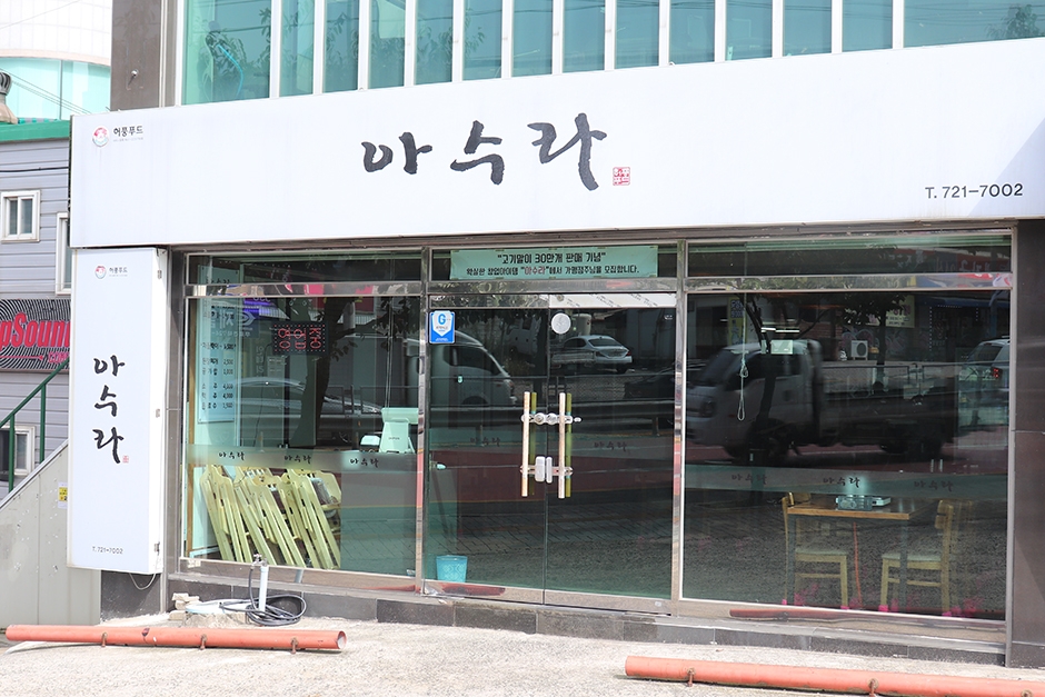 기장군 동부리에 있는 아수라는 손말이고기로 유명한 한식당이다. 육전과 불고기도 맛있고 막국수와 된장찌개도 있다. 기본적으로 제공되는 밑반찬은 장아찌, 직접 담근 깻잎장과 배추 물김치, 옥수수 콘, 새송이버섯 등이고 고기말이를 찍어 먹을 수 있는 독특한 소스도 함께 제공된다. 들기름을 아낌없이 뿌린 불판이 적당히 달아오르면 사장님이 등장해 직접 고기를 구워준다. 들기름의 고소한 향이 매력적이고 얇은 소고기가 부추와 깻잎을 말고 있어 모양새부터 남다르며 식감과 비주얼까지 최강의 조합을 자랑한다. 가까운 곳에 용소웰빙공원, 국립부산과학관 등이 함께 둘러보기 좋은 관광 명소이다.
