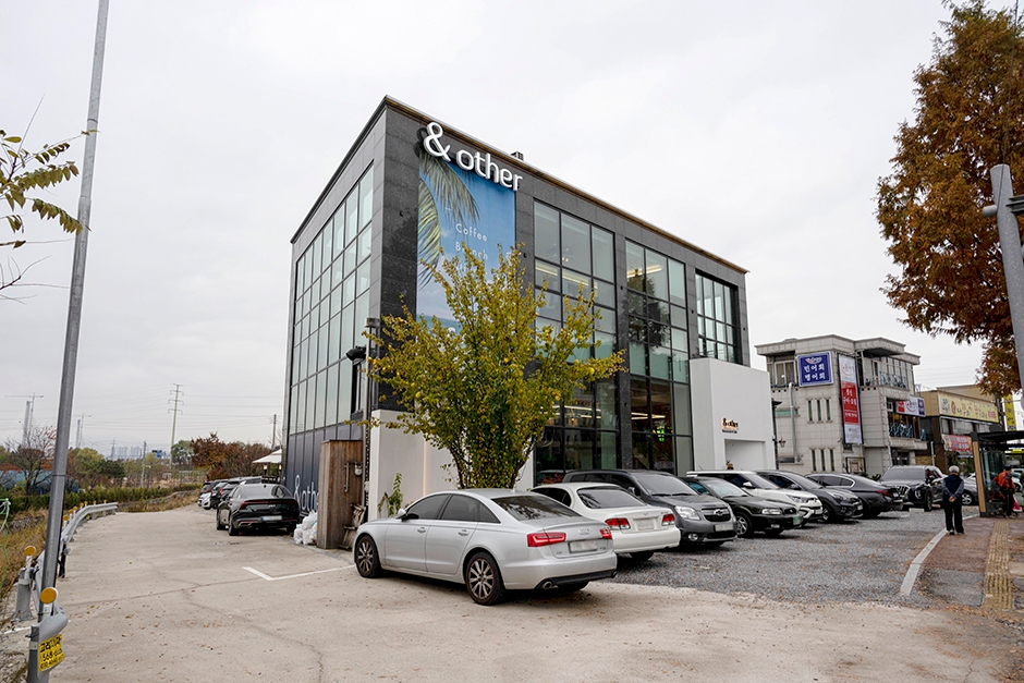 앤아더는 구리시 교문동에 있는 브런치 카페이다. 버스정류장 '한다리마을'에 내리면 바로 앞에 있어 대중교통 접근성이 좋다. 주차는 카페 건물 앞에 할 수 있어 편안하다. 흰색과 검은색의 적절한 배치로 현대적인 느낌을 주는 건물이다. 건물을 독채로 쓰고 있으며 자연 속에 있는 듯, 여유가 있다. 큰 창문이 많아 밝은 햇살이 가득 들어오며 천장도 높고 좌석 간격도 충분하다. 3층 루프탑은 실내와 실외가 있어 날씨에 상관없이 햇볕을 즐길 수 있다. 1층에 수영장도 있어 여름엔 발 담그며 차를 마실 수도 있다. 영업시간이 길어 심야에 갈 수 있는 것도 큰 장점이다.