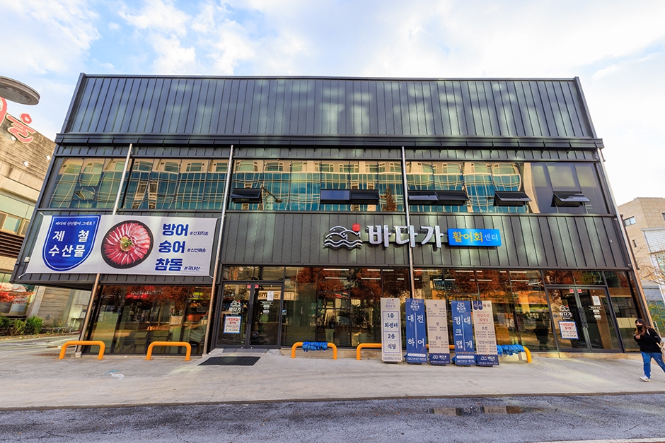 바다가는 대전광역시 유성구 관평동에 있다. 깔끔한 분위기를 연출하는 외관과 차분한 느낌의 인테리어로 이루어졌다. 내부에는 단체석이 마련되어 있어 각종 모임을 하기 좋다. 대표 메뉴는 각종 생선회다. 이 밖에 초밥모둠세트, 활어회덮밥, 알탕, 생우럭탕, 활어물회, 어린이 돈가스 등을 판다. 북대전 IC에서 가깝고, 주변에 티놀자애니멀파크와 한국도로공사회덕메타세쿼이아길이 있다.