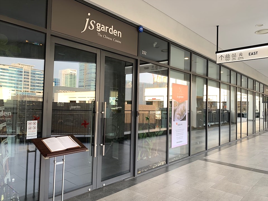 js가든 현대프리미엄 아울렛 송도점은 인천 1호선 테크노파크역 2번 출구 송도 국제대로 현대프리미엄 아울렛 3층에 있다. 주차는 매장이 있는 건물 지하 주차장을 이용할 수 있다. 이곳은 전체적으로 깔끔하고 분위기 좋은 고급 중식 레스토랑이다. 프라이빗하게 식사를 즐길 수 있는 공간이 있어 모임 장소로 좋다. 아이가 있는 손님을 위한 아이 의자도 있고 다양한 종류의 와인도 있다. 반 오픈 키친 타입으로 요리사님이 요리하는 것도 볼 수 있다. 단품 요리부터 북경요리까지 요리의 종류가 다양하다. 기본 찬으로 짜이와 무절임이 나오고 따뜻한 재스민 차가 나온다. 대표 메뉴에는 Nari 점심코스, Lily 저녁코스가 있다. 이외 목화솜탕수육, 깐풍새우, 마라 중새우, 가지 돼지고기볶음, 소고기탕수육, 소고기난자완스 등이 있다. 식당 인근에 송도센트럴파크, 인천상륙작전기념관, 인천시립박물관이 있어 식전 후 둘러볼 수 있다.
