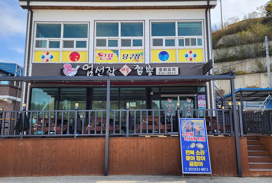 엄선장 짬뽕은 근포동굴가는 길에 있는 거제도 맛집이다. 메인 메뉴인 해물짬뽕은 선장인 사장이 직접 잡은 해물로 만들어서 싱싱한 바다의 풍미를 느낄 수 있다. 큼직한 문어와 소라, 홍합, 가리비, 꽃게까지 푸짐한 해산물로 만들어 진정한 해물짬뽕의 비주얼을 갖추고 있다. 꽃게살은 꽉 차고 문어와 소라는 전혀 질기지 않아 해산물을 씹는 재미도 있다. 국물은 얼큰하면서 해산물에서 우려진 육수 때문에 인위적인 조미료 맛이 나지 않는다. 짬뽕면은 쫄깃하고 푸짐한 양으로 먹어도 쉽게 줄지 않는다. 주차장이 넓어서 주차하는데 불편함은 없다. 근포땅굴이 인접해 있어 함께 둘러보기 좋다.