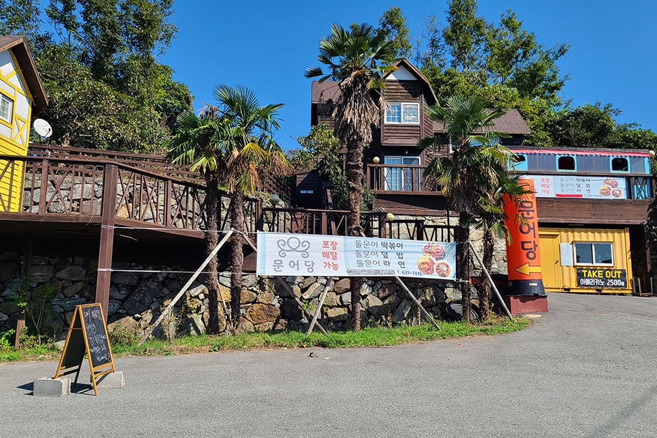문어당은 거제 장목면에 있는 아담한 분식전문 식당이다. 식사하기 좋은 야외 공간이 있으며, 해변의 느낌이 물씬 나는 인테리어가 인상적이다. 문어를 사용해서 다양한 분식 메뉴를 선보이는 문어당의 대표 메뉴는 돌문어 라면이다. 콩나물과 작은 돌문어가 통으로 들어가 있으며 일반 라면 맛보다 깔끔하고 시원하다. 달콤하면서 매콤한 돌문어 떡볶이도 인다. 주차 공간이 여유롭고, 농소 몽돌해수욕장과 거제장목관광단지 등이 인접해 있어 함께 둘러보기 좋다.