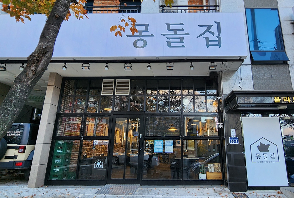 거제 아주동에 있는 몽돌집은 맥반석에 고기를 구워주는 독특한 고깃집이다. 몽돌집의 맥반석은 100℃ 이상 끓는 물로 여러 차례 세척한 후 고온 스팀을 하는 식의 살균 과정을 거쳐 위생적으로 관리하고 있다. 고기는 종업원들이 직접 구워 준다. 이곳은 삼겹살 맛집인데 반건조 오징어와 쫀드기를 구워 먹는 즐거움이 있는 곳으로도 유명하다. 포장마차 스타일의 내부 인테리어가 인상적이다. 주차는 가게 앞이나 주변 골목길에 하면 된다. 아주천이 인접해 있어 함께 둘러보기 좋다.