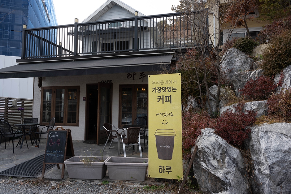 경기도 용인시 에버랜드 근처 맛집인 오늘순두부 뒤에 있는 카페이다. 대형 카페는 아니지만 조용하고 편안한 분위기의 카페이다. 카페 실내는 넓지 않지만 아늑하고 따뜻한 느낌이다. 우드톤에 식물 인테리어도 편안한 분위기에서 차를 마실 수 있게 해 준다. 좌석 하나하나가 특색있고 아기자기하게 꾸며져 있다. 야외 테라스석도 있어 날 좋은 날은 조용한 시간을 즐길 수 있다. 바로 옆은 더숨포레스트 호텔이다. 에버랜드 가는 길에 또는 호텔에서 숙박하는 경우에도 차 한 잔의 여유를 가질 수 있는 힐링 카페이다. 에버랜드에서 동백/분당, 마성tc 올라가는 방향에 있으며 더숨포레스토 호텔이나 오늘순두부집과 진입로가 헷갈릴 수 있으므로 방향을 잘 확인해야 한다. 오늘순두부에서 식사를 하고 영수증을 가져가면 할인을 받을 수 있다.