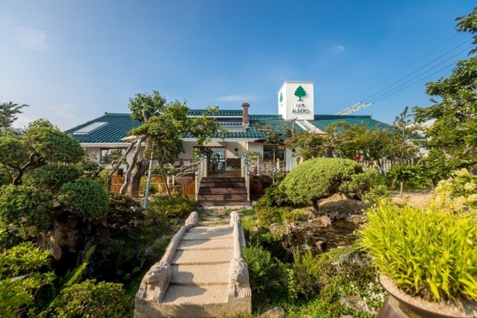 김해시 대동면에 있는 카페 알베로는 여러 가지의 식물과 예쁜 꽃, 다육식물 등이 있는 볼거리 많은 식물원 카페이다. 외진 곳에 있어 내비게이션으로도 찾기 어려워 처음 방문하는 사람들은 자칫 헤맬 수 있는 곳이다. 널찍한 마당과 야외 공간이 있는 본관에서 음료 주문 후 이동하면 된다. 식물들로 꽉 찬 공간 곳곳 테이블이 배치되어 원하는 곳에 앉아 편하게 이용할 수 있다. 내부 시설 모두 깨끗하게 관리되고 있지만 여름철에는 모기와 벌레가 있어 아이와 함께 방문한다면 벌레 약을 챙겨가는 게 좋다. 식물원 공간 외에도 본관에서도 커피를 마실 수 있다. 본관 인테리어 소품으로 오래된 축음기, 오르간, 랜턴 등을 갖다 놓아 색다른 분위기가 난다. 카페 알베로에서 차로 10분 거리에 대저수문 생태공원, 낙동강 둔치공원, 대저 생태공원이 있어 함께 방문해 보는 것도 좋다.