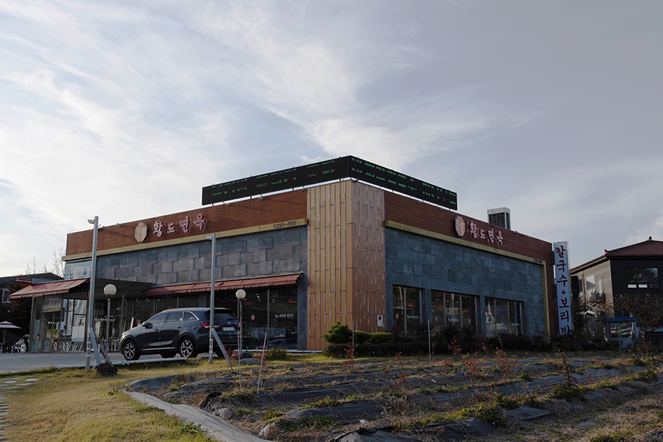 경기도 화성시 융건릉 근처에 있는 바지락칼국수 맛집이디. 황도칼국수라는 상호에서 황도면옥이라는 현재의 명칭으로 변경하였다. 황도란 상호처럼 노란색에 쫄깃한 식감을 가진 면으로 조리한 바지락칼국수가 대표 메뉴이다. 테이블마다 인덕션이 있어 음식이 식지 않게 데워서 먹을 수 있다. 칼국수와 함께 무생채에 비벼 먹는 보리밥도 맛있는 곁들임 메뉴이다. 막걸리를 셀프바에서 무제한 가져다 먹을 수 있다. 매장 천장이 높고 실내가 넓어 시원한 분위기이다. 식사 후에 후식으로 커피를 마실 수 있는 공간도 별도로 준비되어 있다. 세계문화유산 융건릉과 기배역사공원이 가까이 있다.