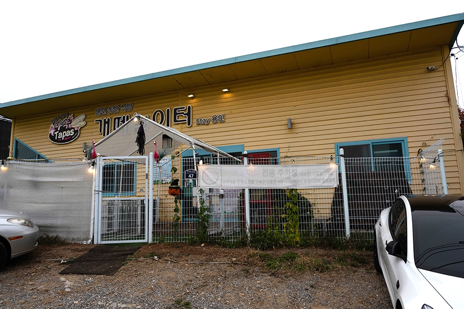 개떼놀이터 용인점은 용인 구성역 앞에 반려견 카페이다. 자정까지 개장하는 카페여서 퇴근 후 반려견을 데리고 산책 나온 고객들이 많다. 주차는 펜스 앞에 10대 정도 가능하나 전철역 앞이라 대중교통을 이용하거나 근처에 산다면 걸어서 이용하는 것이 더 편리하다. 13세 이하의 어린이는 입장할 수 없고, 애견 카페여도 15kg 이상의 견종은 이용할 수 없다. 입장을 할 수 있는 견종이 정해져 있으니 방문 전에 확인이 필요하다. 내부에는 반려견 놀이터, 포토존 등이 있어 반려견을 꾸미거나 사진 찍기 놀이를 할 수 있다. 외부에는 인조 잔디를 깔아 놓은 운동장이 있어 반려견들이 신나게 뛰며 놀 수 있다. 음료는 입장료에 포함되어 있고, 식사 메뉴는 별도로 지불해야 한다.