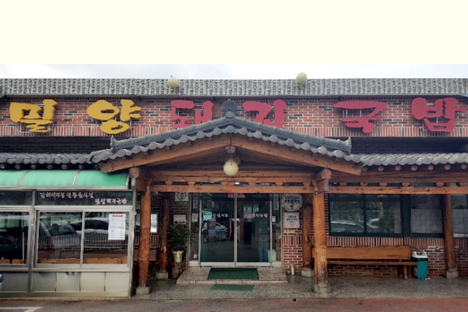 김해 어방동에 있는 밀양돼지국밥은 김해에서 소문난 돼지국밥 맛집이다. 150석의 좌석을 갖추고 있다. 넓은 홀에 비해 주차장이 협소하여 점심시간에 방문한다면 혼잡할 수 있다. 토렴식으로 밥과 국밥을 함께 주는 돼지국밥이 대표 메뉴이다. 국과 밥을 따로 먹고 싶다면 따로국밥을 주문하면 된다. 기본 찬으로 부추무침, 마늘 새우젓, 양파, 고추, 김치 등이 나온다. 매장에 걸려있는 메뉴판에는 국밥 종류만 적혀있지만, 취향에 맞게 내장 따로, 섞어 따로, 내장 수육 백반 등 다양하게 준비되어 있다. 주문 시 직원에게 문의하거나 계산서에 적혀 있는 것을 보고 주문하면 된다. 근처에 걷기 좋은 신어산 산림욕장이 있어 식사 전후에 산책하기 좋다.
