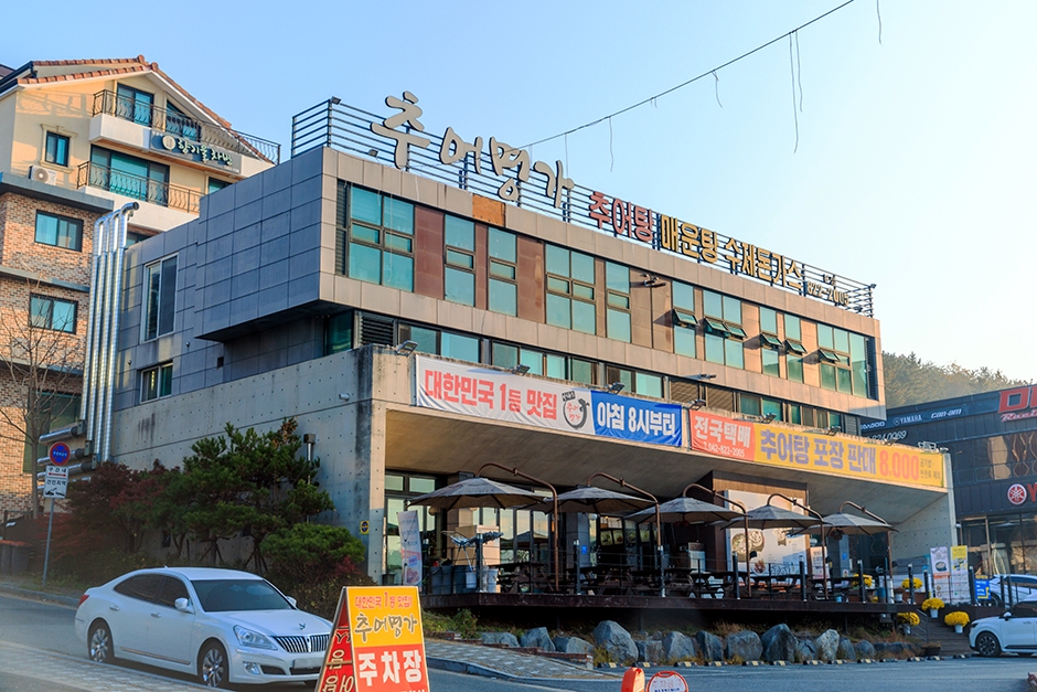추어명가 본점은 대전광역시 유성구 구암동에 있다. 깔끔한 느낌의 외관과 차분한 분위기를 연출하는 인테리어로 이루어졌다. 내부에는 단체석이 마련되어 있어 각종 모임을 하기 좋다. 대표 메뉴는 매일 아침 매장에서 직접 살아 있는 싱싱한 미꾸라지를 가마솥에 끓여서 만든 추어탕+가마솥밥이다. 추어탕을 비롯해 고추말이추어튀김, 간장새우장 등이 함께 상에 오르는 명가특정식도 인기가 많다. 오전 8시에 영업을 시작하기 때문에 여행길에 들러 아침 식사를 하기 좋은 곳이다. 유성 IC에서 가깝고, 주변에 국립대전숲체원과 계룡산국립공원수통골이 있다.
